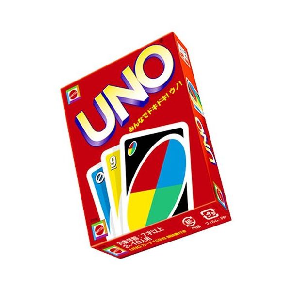 メール便全国送料無料!!uno【今だけメール便全国送料無料!!】ウノカードゲーム 価格: 999円 レビュー評価: 5.0 レビュー数:2 ウノカードゲーム みんなで楽しむほのぼのウノゲーム!最強のカードゲームがニューデザインでやってきました!注目の新デザインでますますゲームプレーがヒートアップ間違いなしですよ。人目でわかるカラフルな配色と楕円をモチーフとしたデザインがプレーヤーのハートをキャッチ!!シンプルなデザイン、シンプルなルールだからこそ長時間プレーしても飽きがきません。配達保険(盗難・破損)付ご希望の場合は、宅急便(\500?)をお選びくださいませ。サイズ:147×93×235mm(内箱)対象年齢:7歳以上(C)2003 Mattel,Inc.All RightsReserved. Supported by 楽天ウェブサービス |
